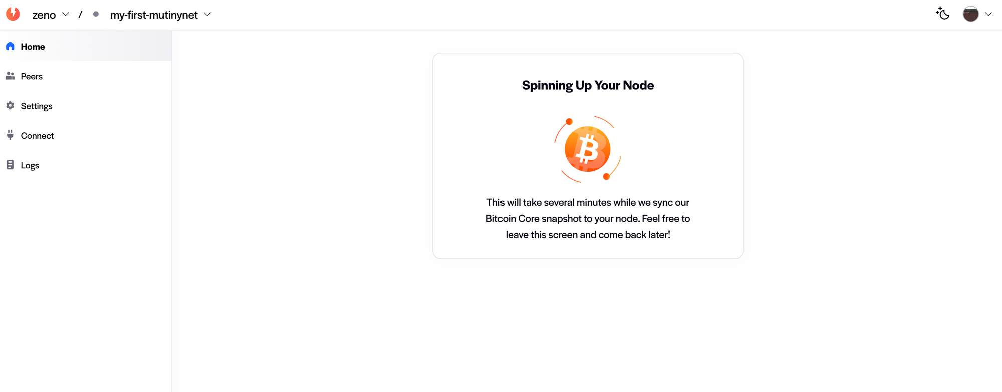 You should see a loading screen for a bit while the node is being provisioned: