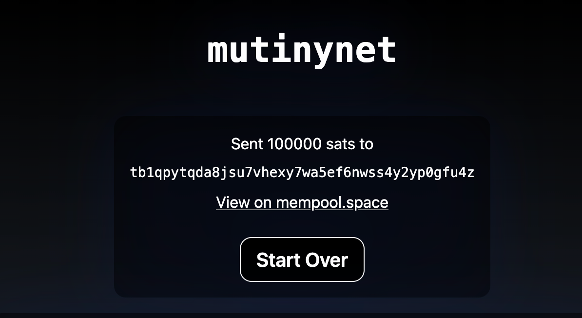 After experimenting the limitations of each of the above methods, the team at Mutiny decided to create Mutinynet. It's a fork of Bitcoin Core that changes the block time average from the usual 10 minutes to around 30 seconds, along with some other bells and whistles. The Mutiny team found that they were building things that couldn't be easily tested in a local Regtest environment, and given all the issues with Testnet, they decided to make their own network.